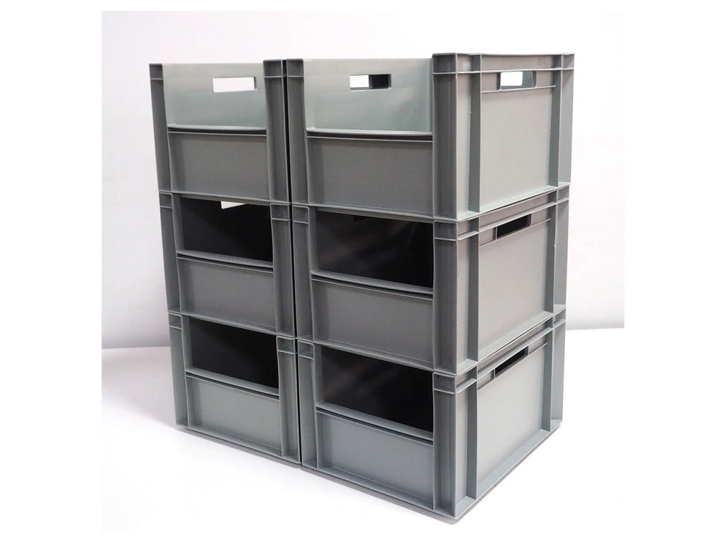 The 20-litre grey industrial plastic crate is a compact yet durable storage solution, perfect for logistics, warehousing, and retail operations. With a reinforced structure, it ensures secure stacking without damaging products underneath.